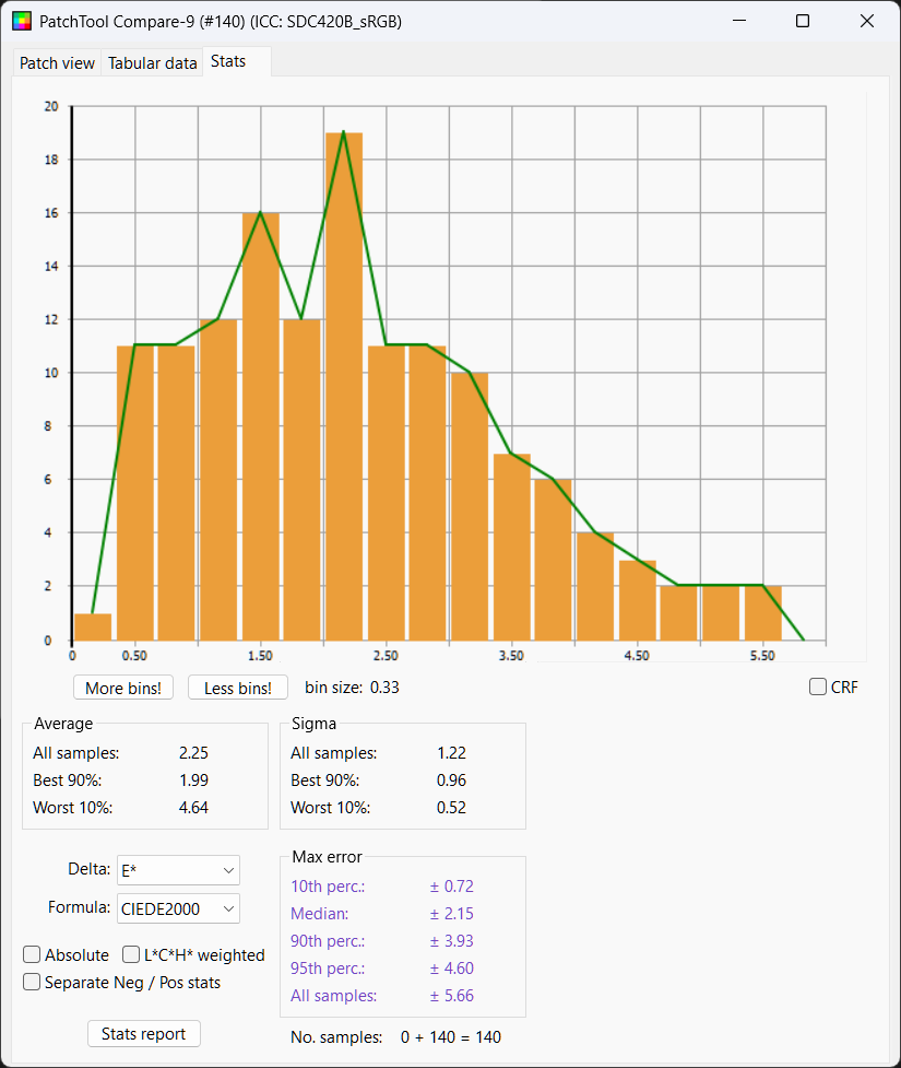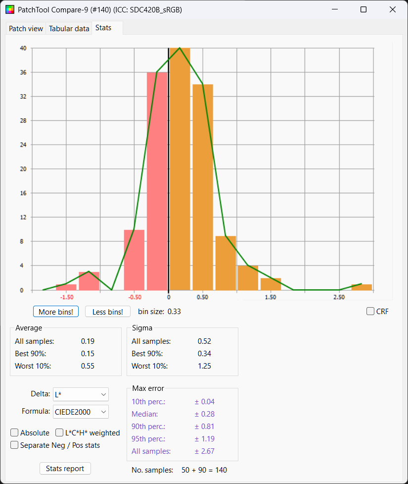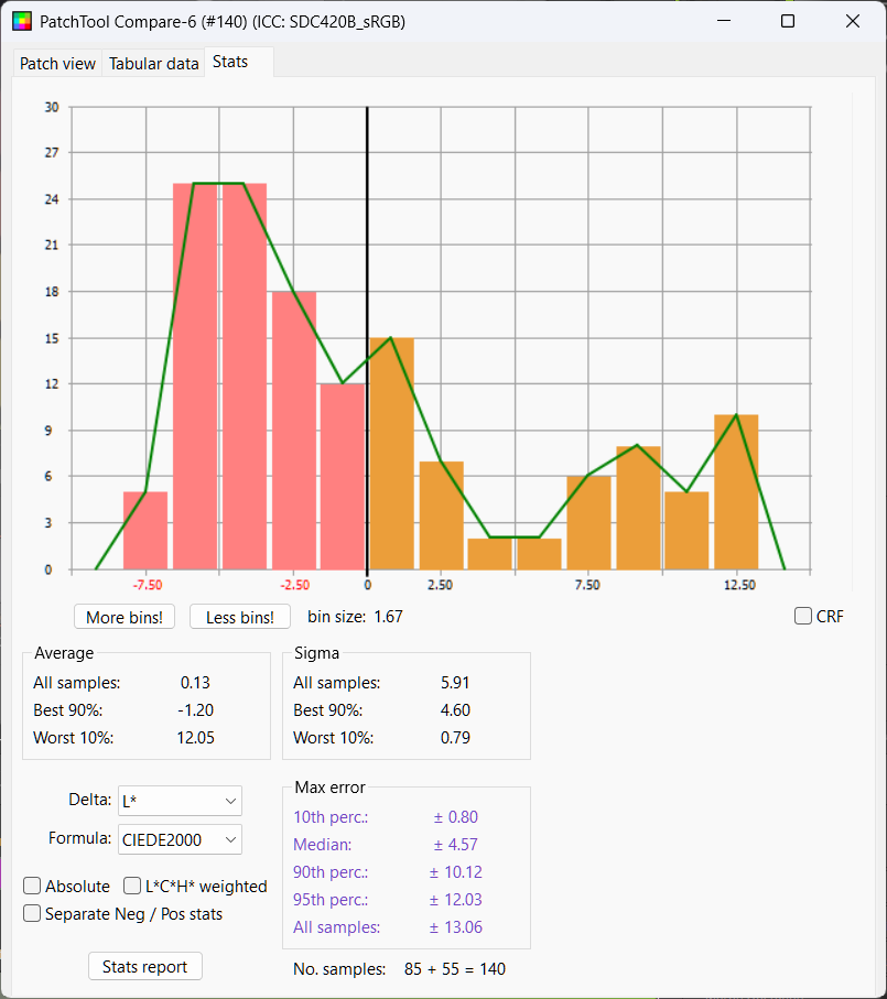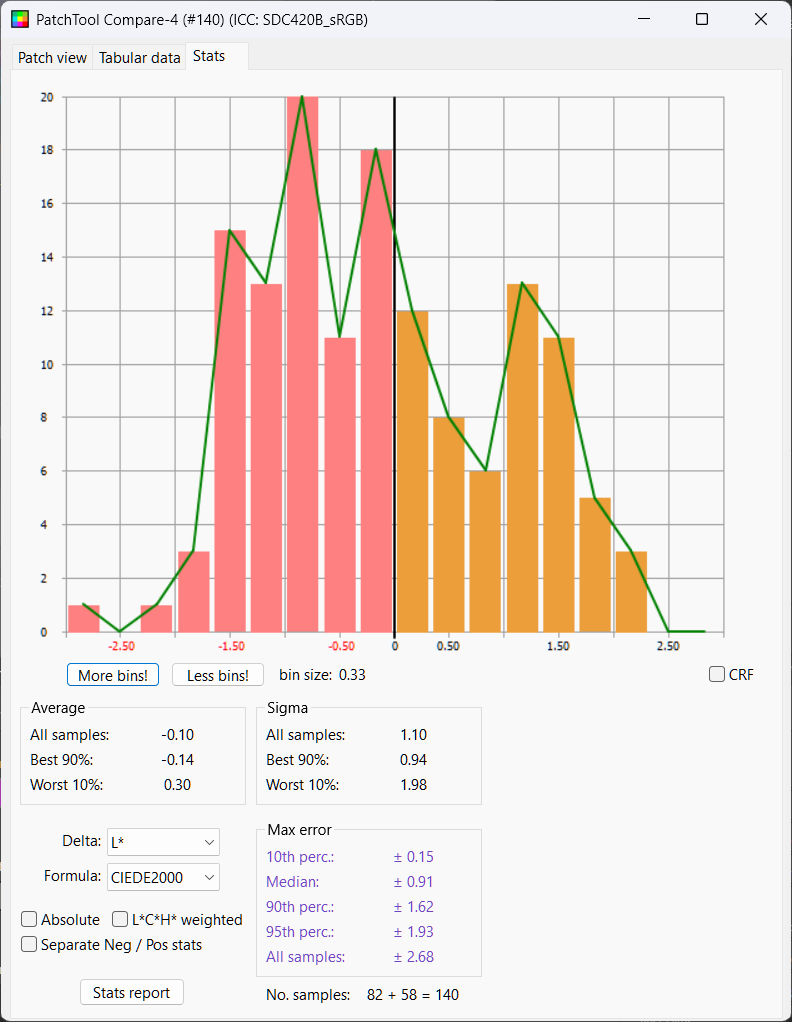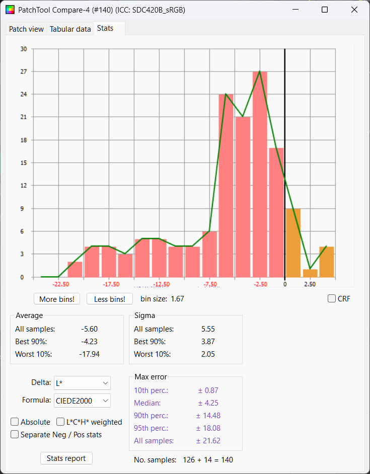 Python LUT: Delta E Mean 2.25, Median 2.15, Delta L 50%ile 0.28