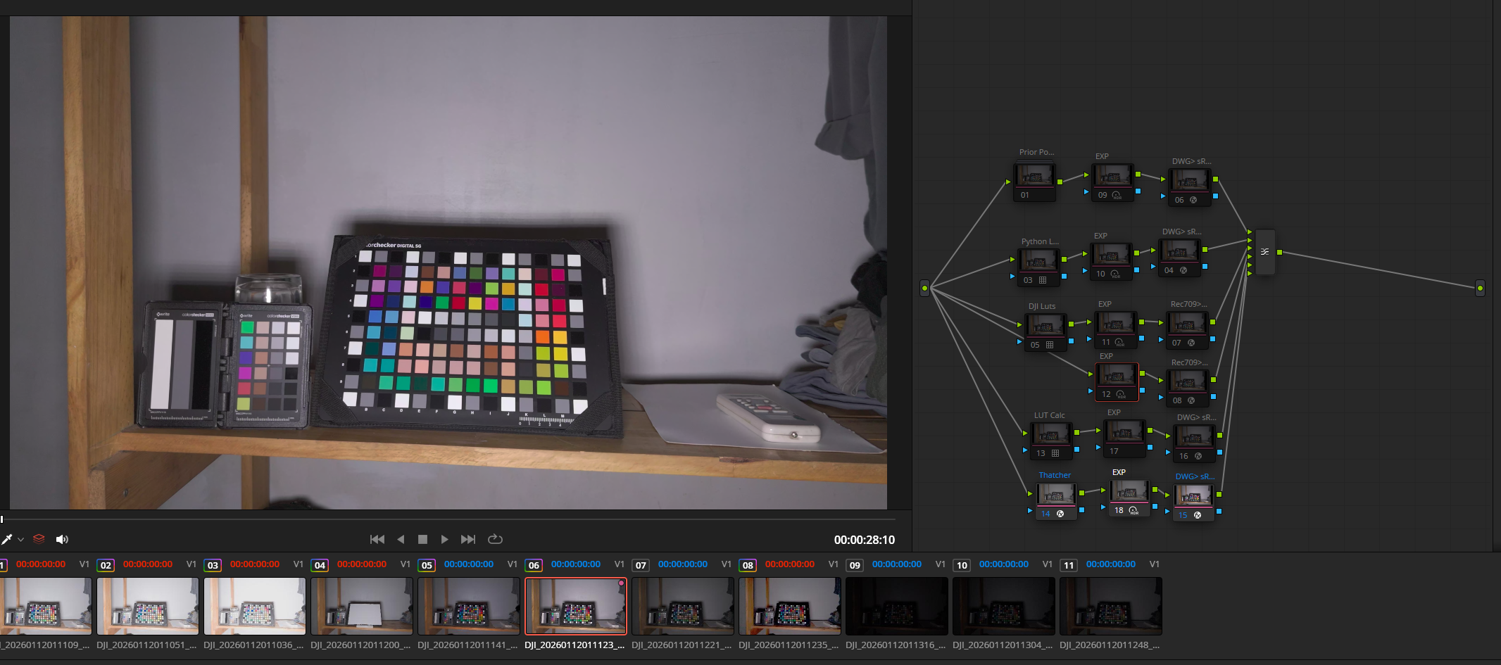 Test the accuracy of the various color management tools I have available for DJI D-Log-M footage. These are;